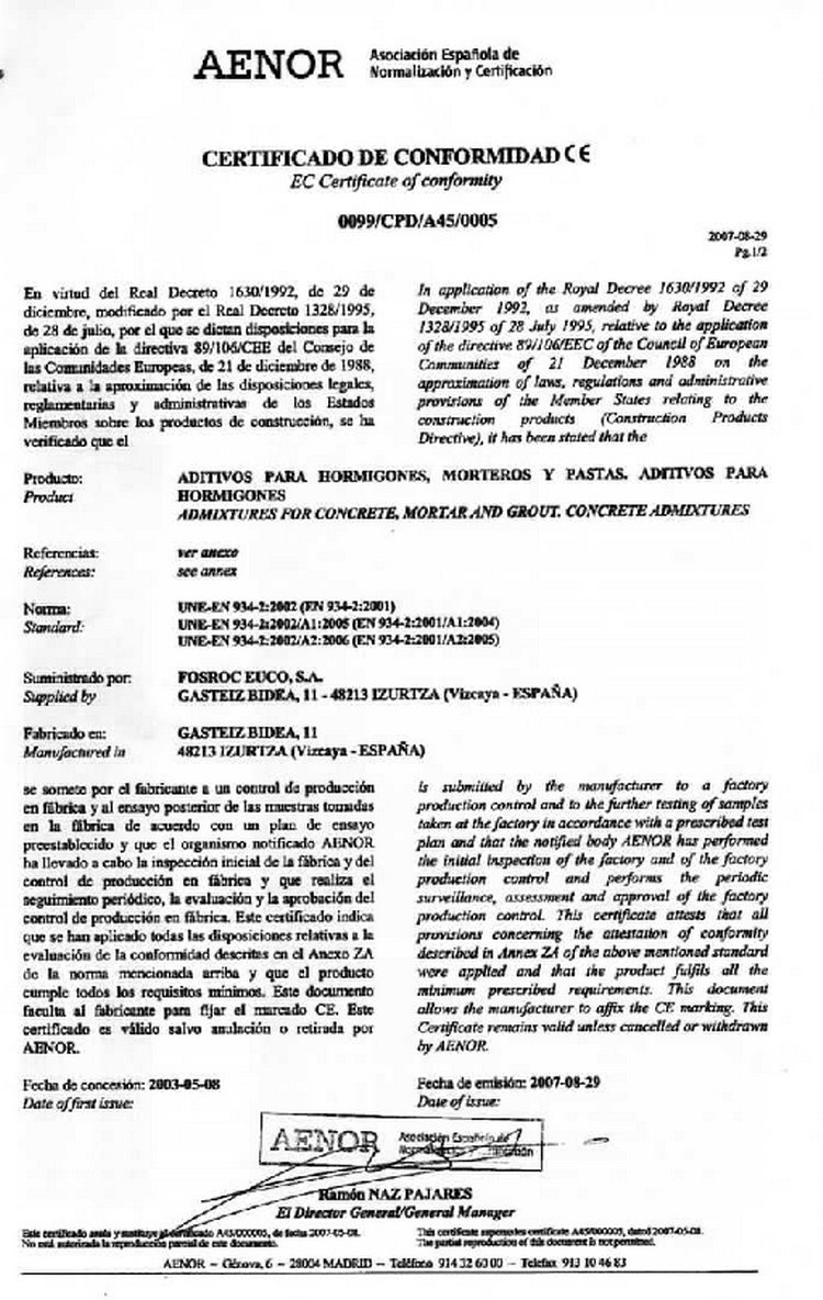 Certificado CE de Conformidad Fosroc Euco, S.A.