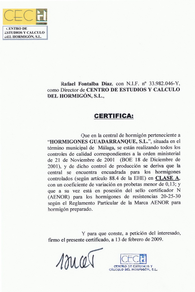 Las pruebas de control de calidad del hormigón que se fabrica se realizan a través de la empresa homologada Laboratorios CECH, S.A.